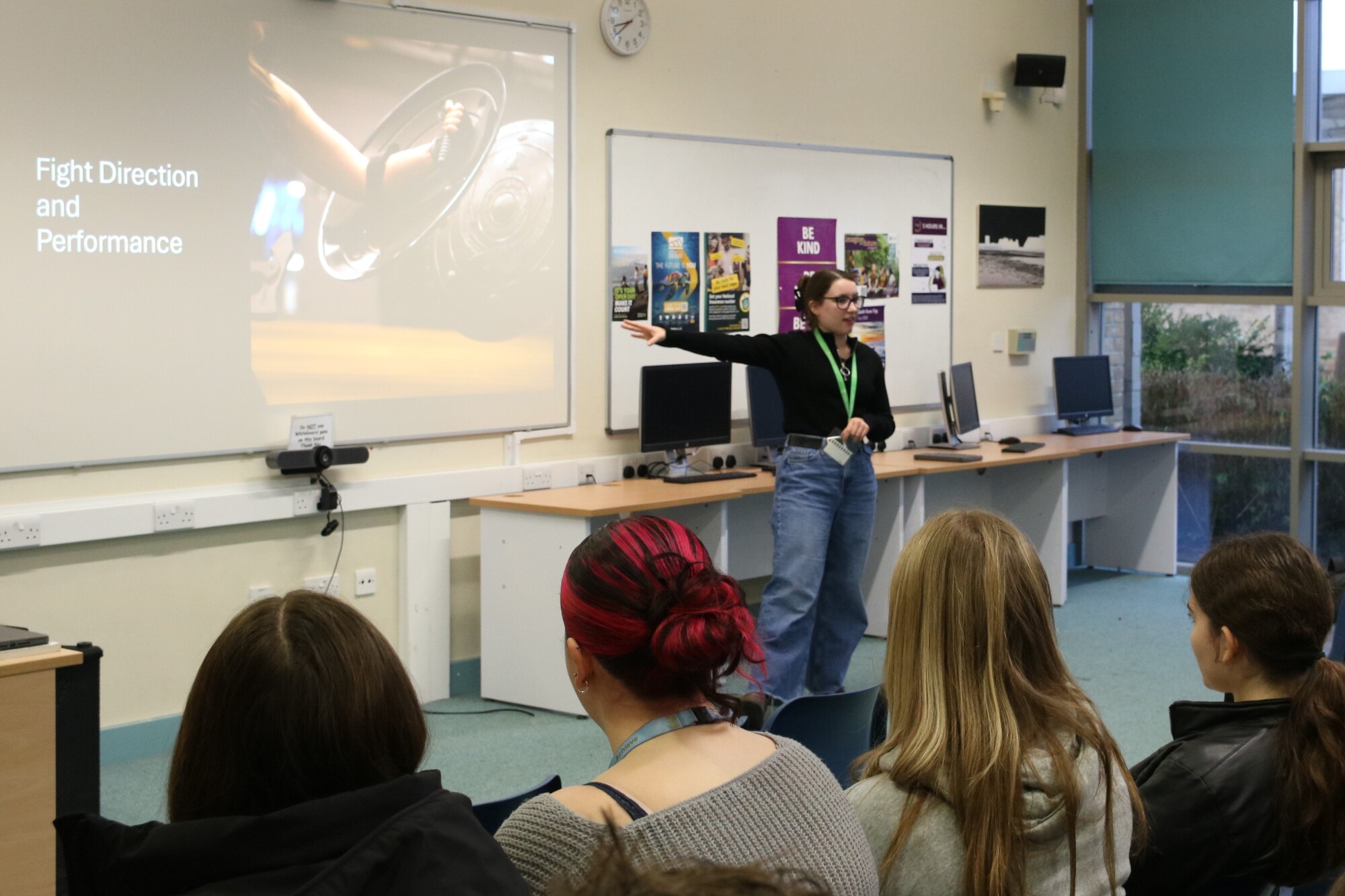 Abi shared her highlight reel of her favourite productions and gave a brief overview of the safe choreography of stage combat. If any students are interested in learning more about how to get training and certification in stage combat and sword work, we can help put you in touch with Abi.