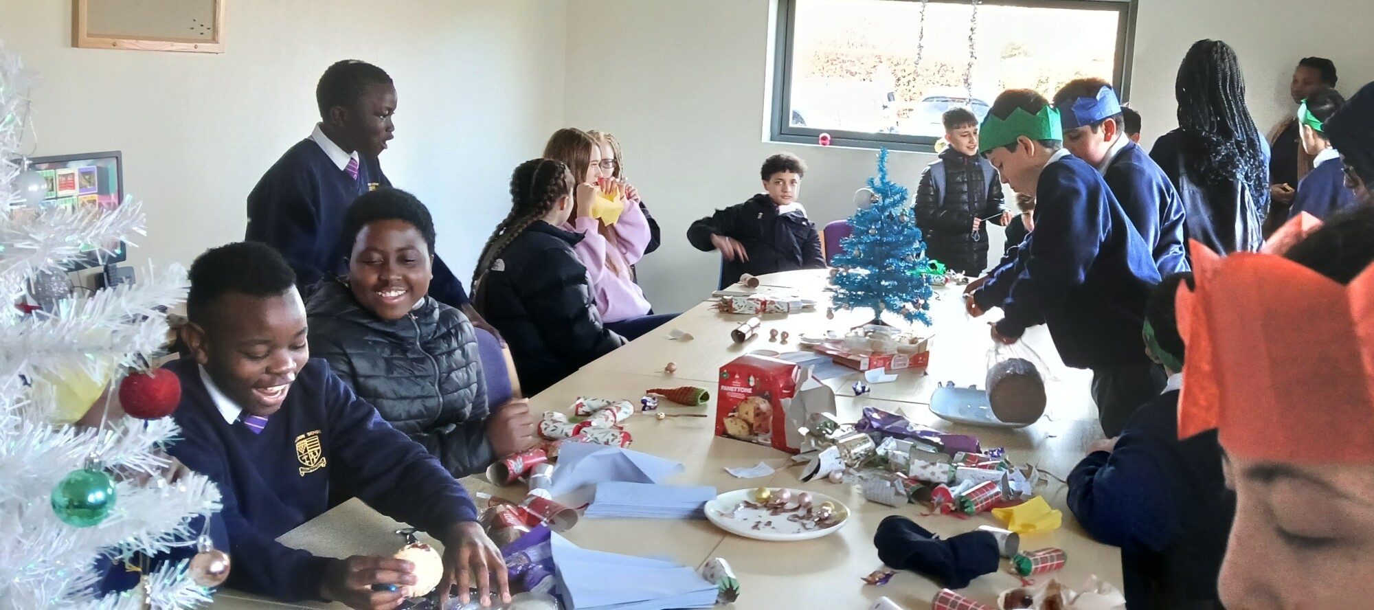 Our Year 9 EAL Ambassadors hosted a Christmas Party during lunch on Tuesday for students in the school that recently arrived in the UK and who speak English as an additional language. Our EAL group is a fantastic way for students to make new friends, share their own language and culture as well as get support in developing their English language skills. During the party, students were treated to mince pies, Christmas cakes and Christmas crackers as they shared their lunch break and listened to festive tunes. Thank you to Mr Davies and our EAL Ambassadors for organising the Christmas party.