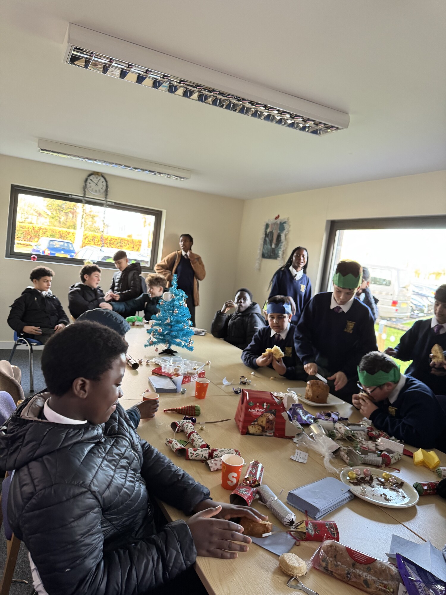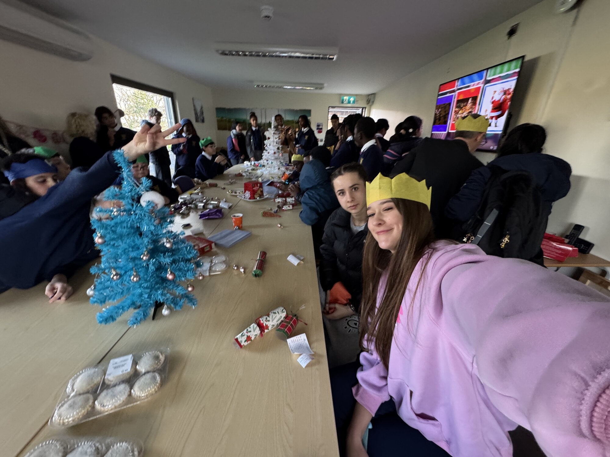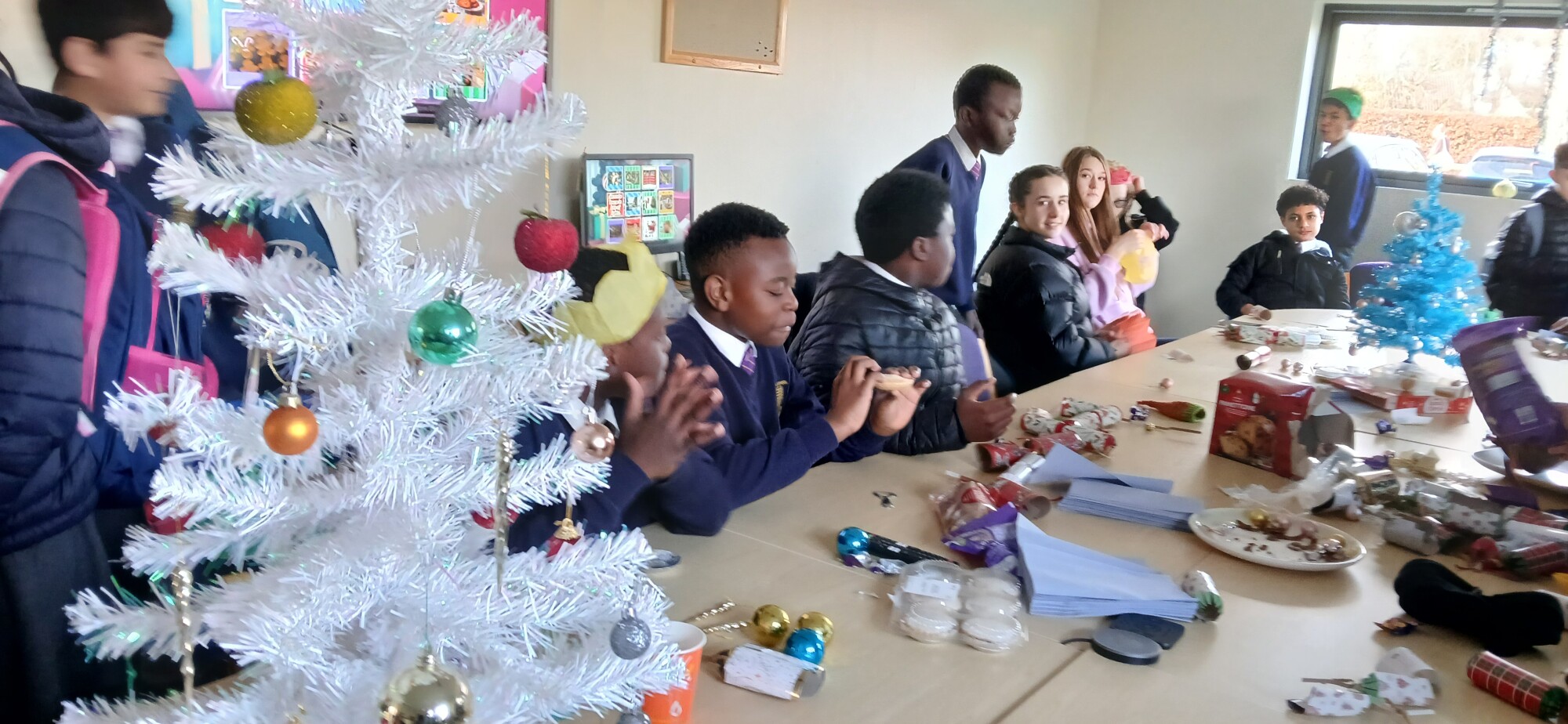 Our Year 9 EAL Ambassadors hosted a Christmas Party during lunch on Tuesday for students in the school that recently arrived in the UK and who speak English as an additional language. Our EAL group is a fantastic way for students to make new friends, share their own language and culture as well as get support in developing their English language skills. During the party, students were treated to mince pies, Christmas cakes and Christmas crackers as they shared their lunch break and listened to festive tunes. Thank you to Mr Davies and our EAL Ambassadors for organising the Christmas party.