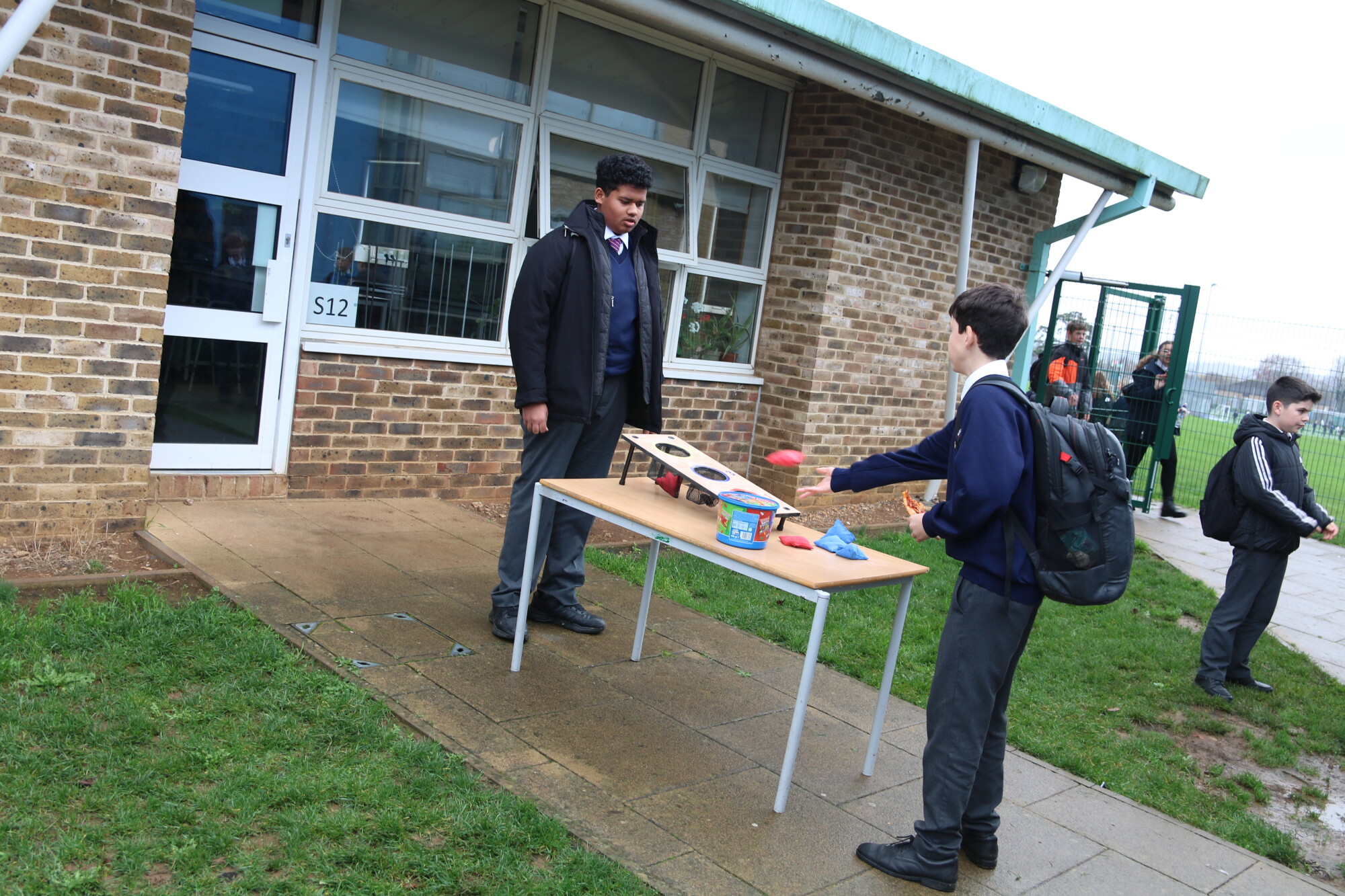 Yesterday, Year 11 hosted traditional playground games in the field during lunch to raise funds for their Prom, as well as our charity of the year, Wiltshire Air Ambulance. Despite the wet weather, we had lots of fun with welly wanging, a coconut shy, cream pies and more! Thank you to all the students that organised the events and to all the enthusiastic participants in the games--especially our trainee teachers who volunteered to get pie faced!